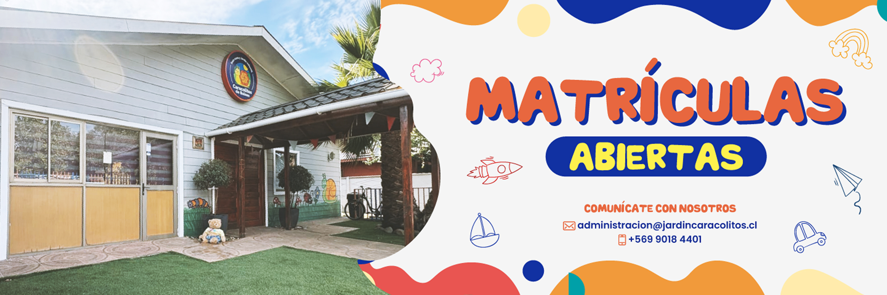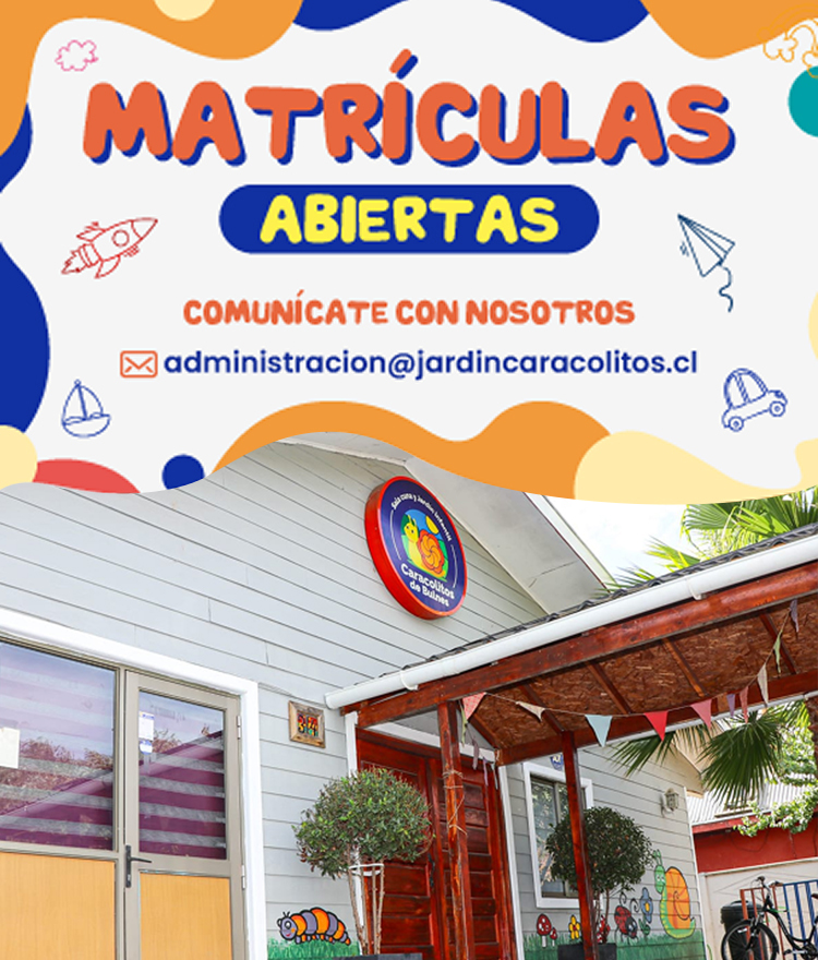 En Jardín Infantil Caracolitos, ubicado en Bulnes, región de Ñuble, brindamos un espacio cálido y seguro para el desarrollo integral de los niños y niñas. Fomentamos el aprendizaje a través del juego y la exploración, promoviendo valores como el respeto y la empatía. Contamos con un equipo profesional comprometido y trabajamos en estrecha colaboración con las familias para acompañar a los pequeños en sus primeros pasos hacia un futuro lleno de posibilidades.